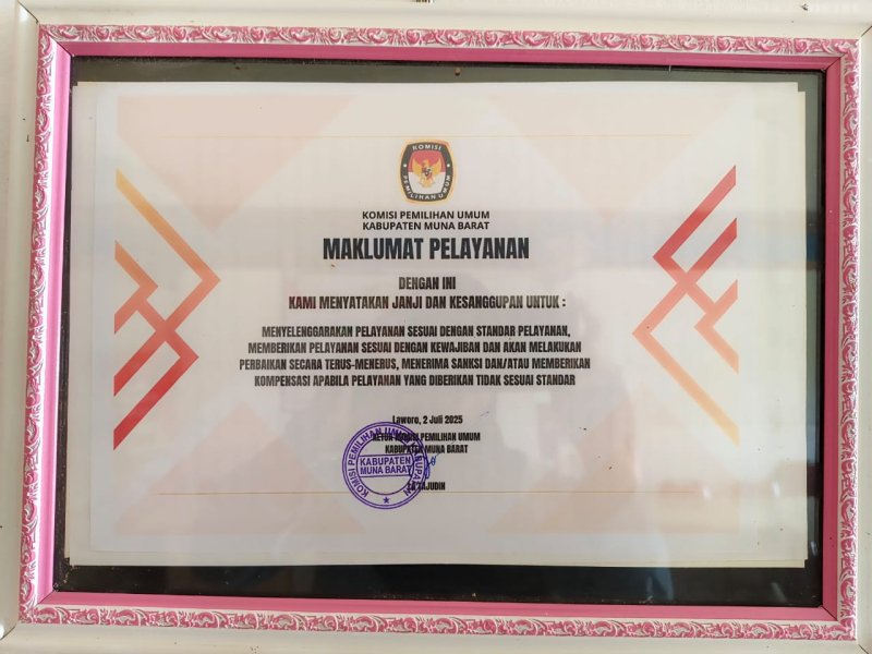 Maklumat Pelayanan Publik pada KPU Kabupaten Muna Barat