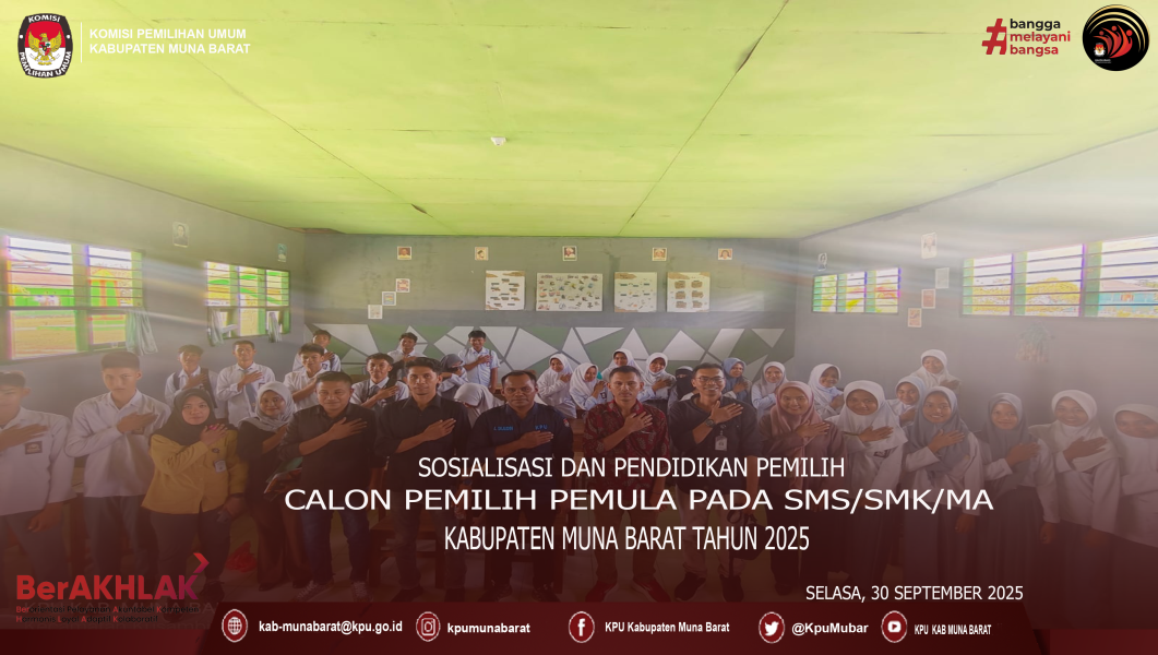 #Temanpemilih,, Sosialisasi Pendidikan Pemilih Calon Pemilih Pemula pada SMA/SMK/MA Tahun 2025 bertempat di Madrasah Aliyah Lapokainse Kecamatan Kusambi Kabupaten Muna Barat, Selasa (30/09/2025). Kegiatan dibuka langsung oleh Ketua KPU Kabupaten Muna Barat Tajudin Rinto, dalam sambutannya pak ketua menyampaikan bahwa tujuan dari kegiatan ini adalah untuk meningkatkan Partisipasi pemilih dan memberikan informasi terkait pemilu dan berdemokrasi kepada calon pemilih pemula. Pendidikan pemilih bagi calon pemilih pemula sangat penting untuk memperbaiki kualitas demokrasi di Indonesia,tambah pak ketua. Kegiatan ini dihadiri Ketua dan Anggota KPU Kabupaten Muna Barat, Jajaran Staf Sekretariat KPU Kabupaten Muna, Siswa/Siswa Madrasah Aliyah Lapokainse. #KPUMelayani ....