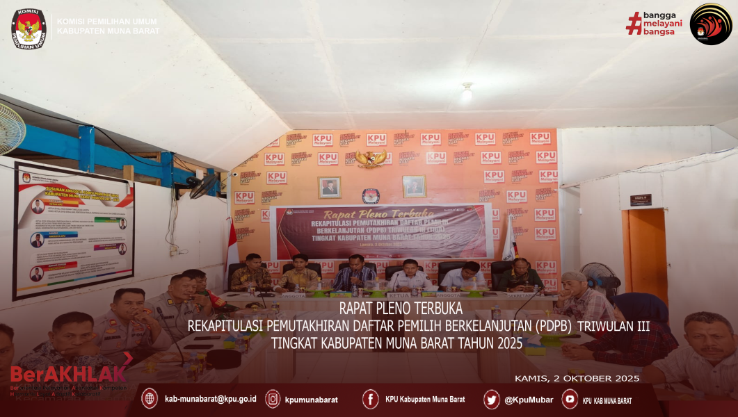 #Temanpemilih,,,KPU Kabupaten Muna Barat melaksanakan kegiatan Rapat Pleno Terbuka Rekapitulasi Daftar Pemilih Berkelanjutan (PDPB) Triwulan III Tahun 2025 diAula Kantor KPU Kabupaten Muna Barat, Kamis (2 /10/2025).