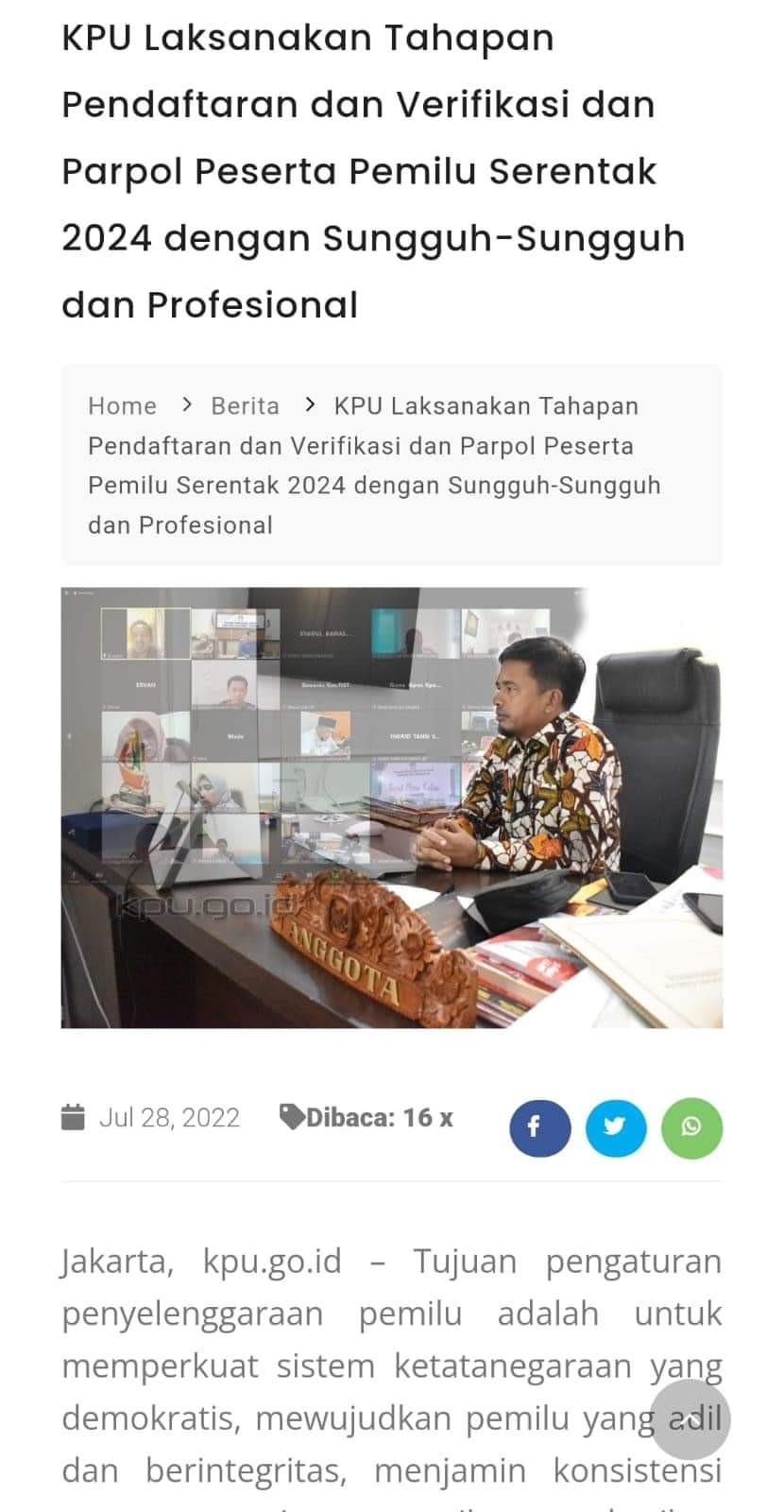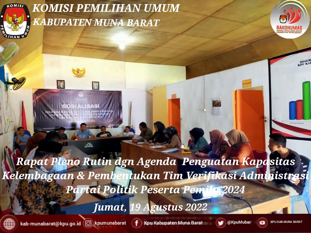 La Ode Abdul Manaf, Sekretaris KPU Kab.Muna Barat selaku Pembina apel dalam arahannya beliau menyampaikan bahwa Kedisiplinan ttp harus d jaga dan memberikan apresiasi kepada Tim Verifikasi adminstrasi Partai Politik calon peserta Pemilu 2024, Sekretaris jg mengingatkan bahwa verifikasi administrasi tentunya harus menjunjung tinggi integritas dan profesionalitas.