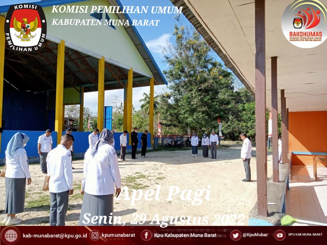 Bakohumas KPU Kabupaten Muna Barat.#TemanPemilih,Mengawali kegiatan Senin pagi KPU Kabupaten Muna Barat melaksanakan Apel Pagi Rutin di Halaman Kantor KPU Kabupaten Muna Barat (29/08/2022) diikuti oleh Sekretaris,Para Kasubbag,Staf Sekretariat PNS dan PPNPN KPU Kab.Muna Barat.