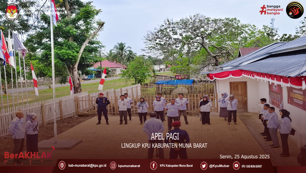 Turut hadir dalam upacara Anggota KPU Kabupaten Muna Barat, Sekretaris, Kasubbag serta staf Sekretariat KPU Kabupaten Muna Barat.
