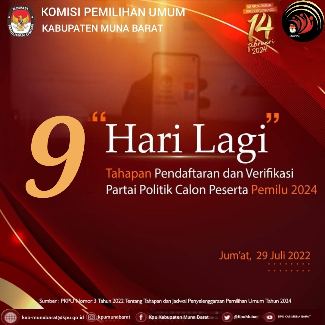 #TemanPemilih,,Hari ini Selasa tanggal 19/07/2022 Pukul 13.45 WITA Sekretariat KPU Kab.Muna Barat Menyerahkan :