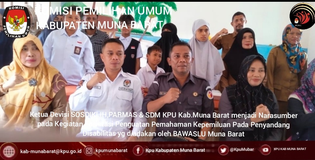 #Temanpemilih,,Pada hari Selasa Tanggal 19/07/2022 Ketua Devisi SOSDIKLIH,PARMAS & SDM KPU Kab.Muna Barat La Ode Muhamad Nuzul ANSI,S.Ip,M.Si menjadi Narasumber pada Kegiatan Fasilitasi Penguatan Pemahaman Kepemiluan pada Penyandang Disabilitas yg diadakan oleh BAWASLU Muna Barat.