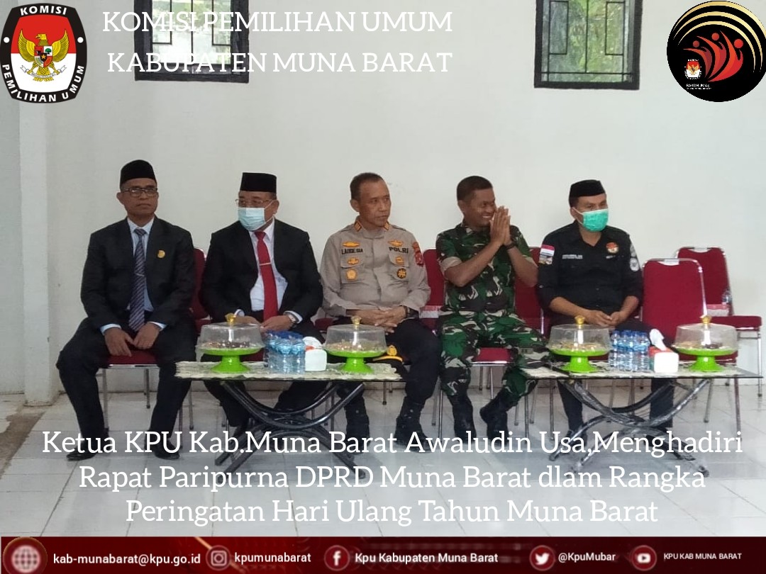 #Temanpemilih,,Hari ini Jum'at,22/07/2022 Ketua KPU Kab.Muna Barat Awaludin Usa Menghadiri Rapat Paripurna DPRD Kab.Muna Barat dalam rangka Peringatan Hari Ulang Tahun Kab.Muna Barat yg ke 8 Tahun .