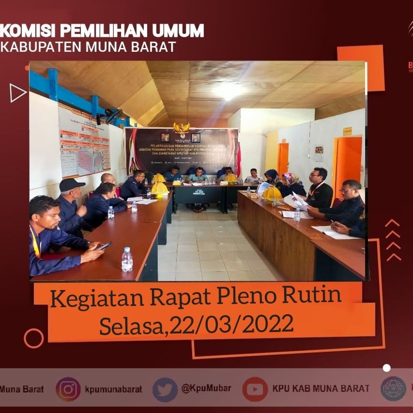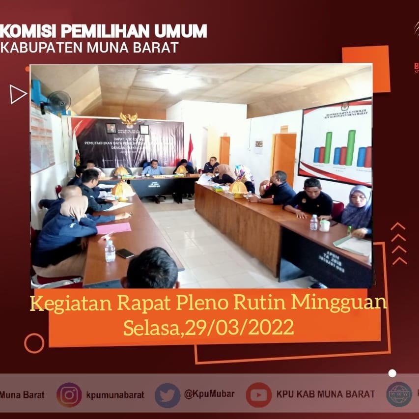 Hai #Temanpemilih,,Selasa (22/03/2022) Pukul 10.00 WITA,KPU Kab. Muna Barat melakukan Rapat Pleno Rutin,rapat pleno dipimpin langsung oleh Ketua KPU dan diikuti Anggota KPU, Sekretaris, Kasubag dan para Staf Sekretariat KPU Kab.Muna Barat.