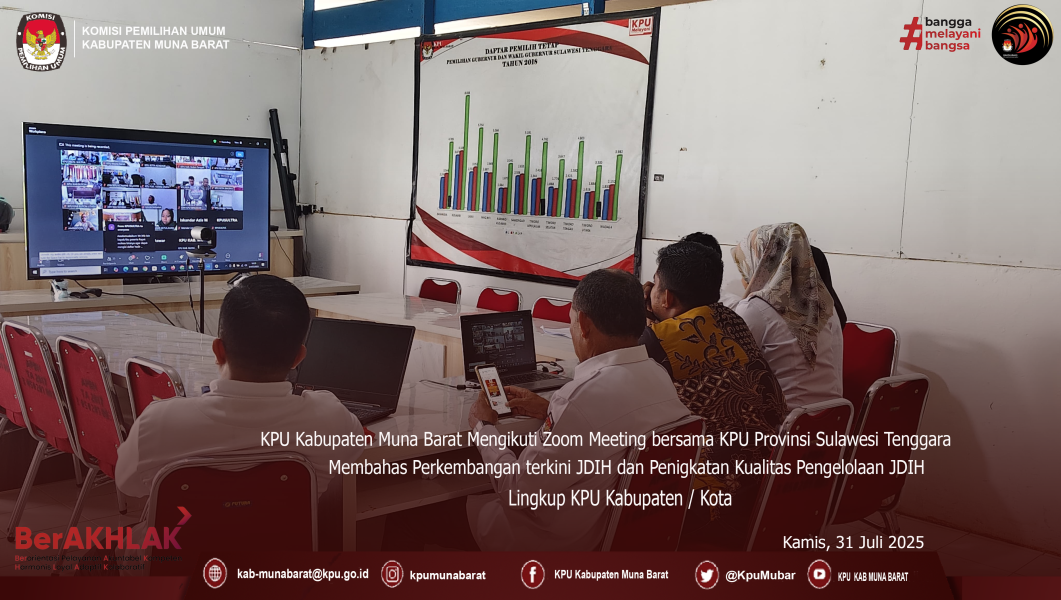 #Temanpemilih,,,KPU Kabupaten Muna Barat mengikuti zoom meeting bersama KPU Provinsi Sulawesi Tenggara membahas Perkembangan JDIH di Aula kantor KPU Kabupaten Muna Barat, Kamis 31 Juli 2025.